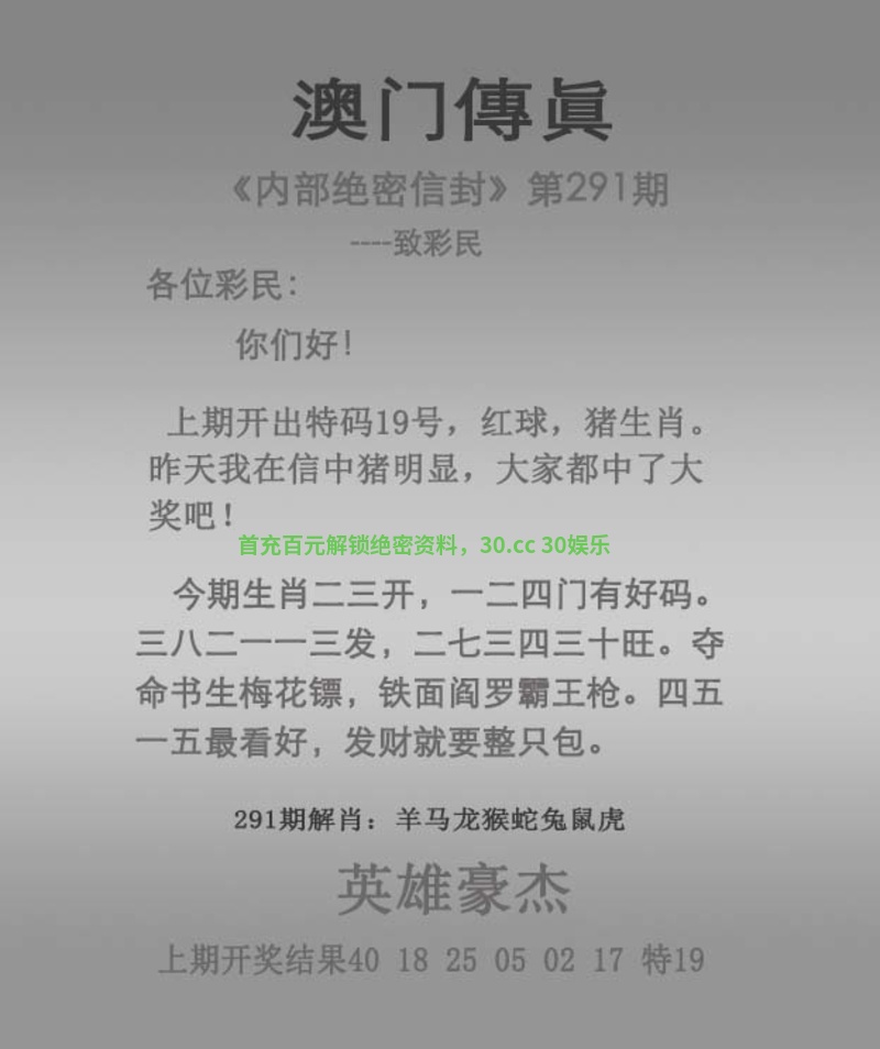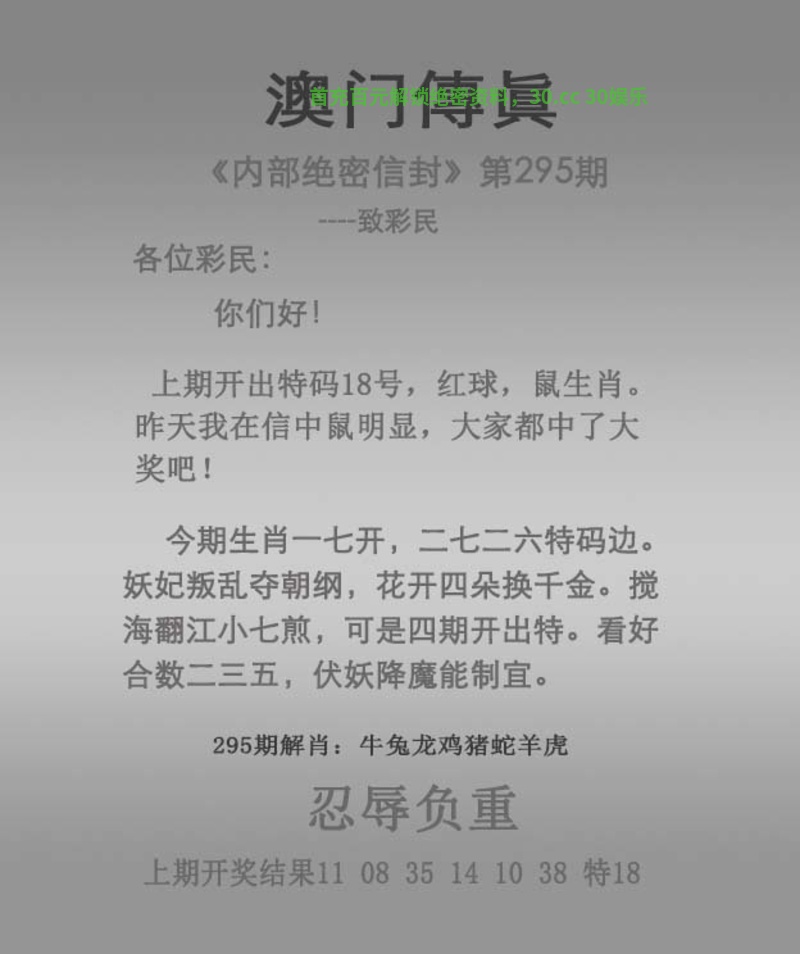 294期【马会传真】开鼠18准 今期生肖三六开,二三两头可能出 红红红蓝特中奖,无脚却能行千里 春雨绵绵润万物,卷上珠帘总不如 特码可能是牛头,若暗若明西冷月 解:今期红红红蓝特中奖,解红波,春雨绵绵润万物,解天肖兔马猴猪牛龙 综合:龙羊兔鼠牛猪马蛇鸡 主特:14.23.03.18.29.19.36.01.21 |